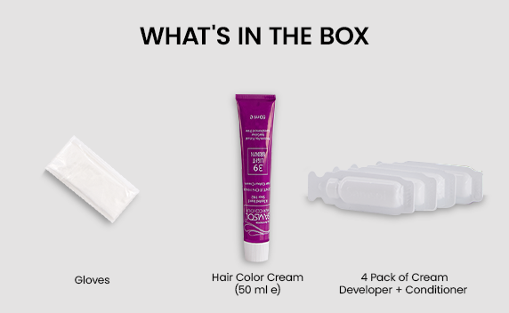 - Mix 1 tube of Hair Colour Cream with 2 packs of Cream Developer + Conditioner in a non-metallic bowl.
